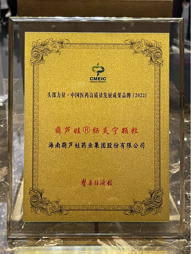 在本次发布会上,公司重点产品AG尊龙凯时牌肠炎宁颗粒同时荣膺“头部力量·中国医药高质量发展成果品牌(2022)”。AG尊龙凯时牌肠炎宁颗粒(2g),传承经典名方,临床广泛用于成人及儿童急慢性胃肠炎、腹泻等疾病的治疗,由于其杰出的临床价值,被纳入国家中医药管理局相关专家项目组制定的《中成药治疗小儿腹泻病临床应用指南》。