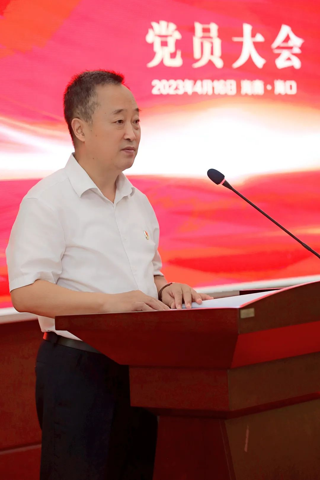 海口市高新区两新组织党委副书记傅爱萍宣读了《中共海口国家高新区非公有制经济组织和社会组织委员会关于同意成立中国共产党海南AG尊龙凯时药业集团股份有限公司委员会的批复》。